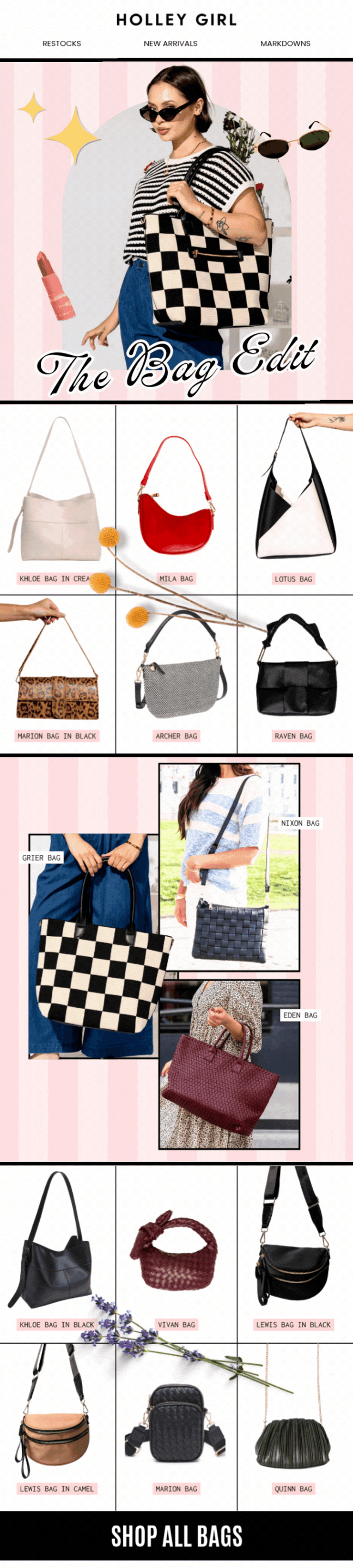 Holley Girl is a women’s clothing company based out of Utah. As the company’s first paid designer, I brought their identity from Canva templates and photoshoots on white paper to one that tells a story. I have done everything from art directed photoshoots, designed social and email campaigns and reworked the structure of their website.